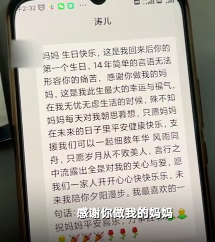 妈妈生日的时候,符建涛给他发了一条很长的消息:“14年简单的言语无法形容你的痛苦,感谢你做我的妈妈”。