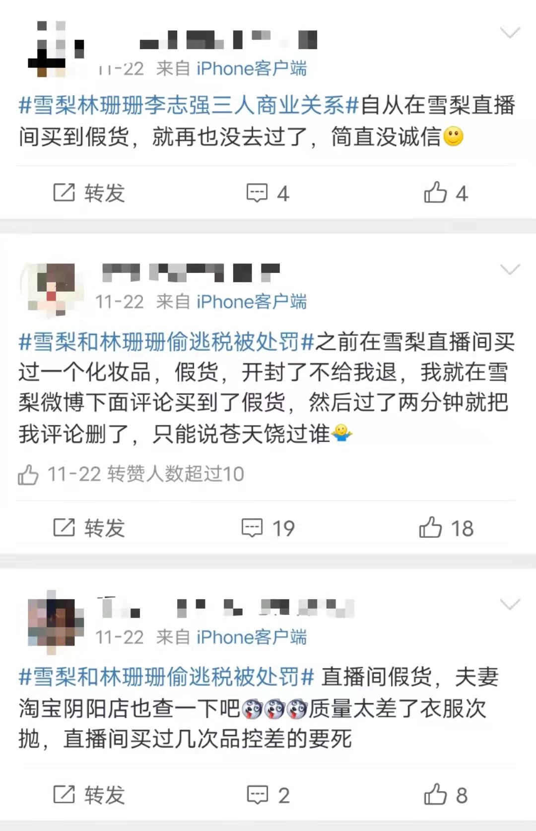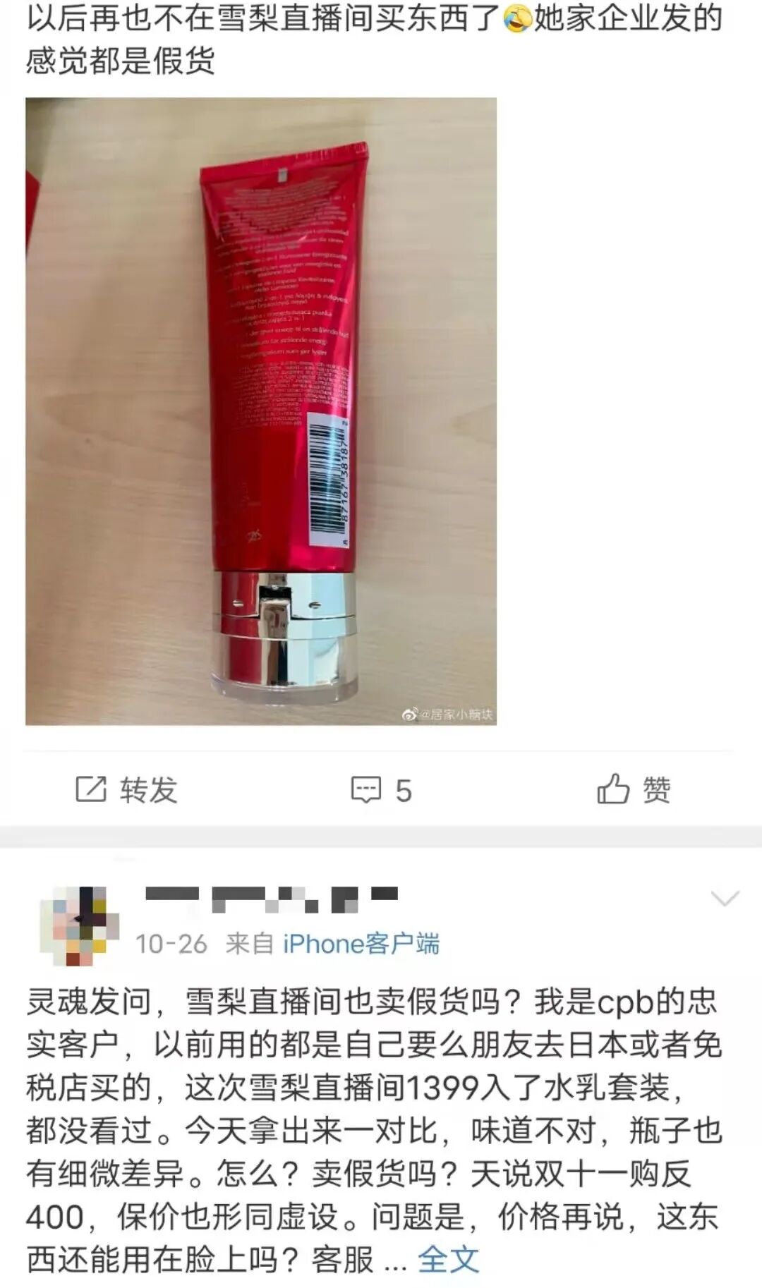 除了抄袭,网传雪梨直播间卖假货的消息也让不少消费者苦恼。