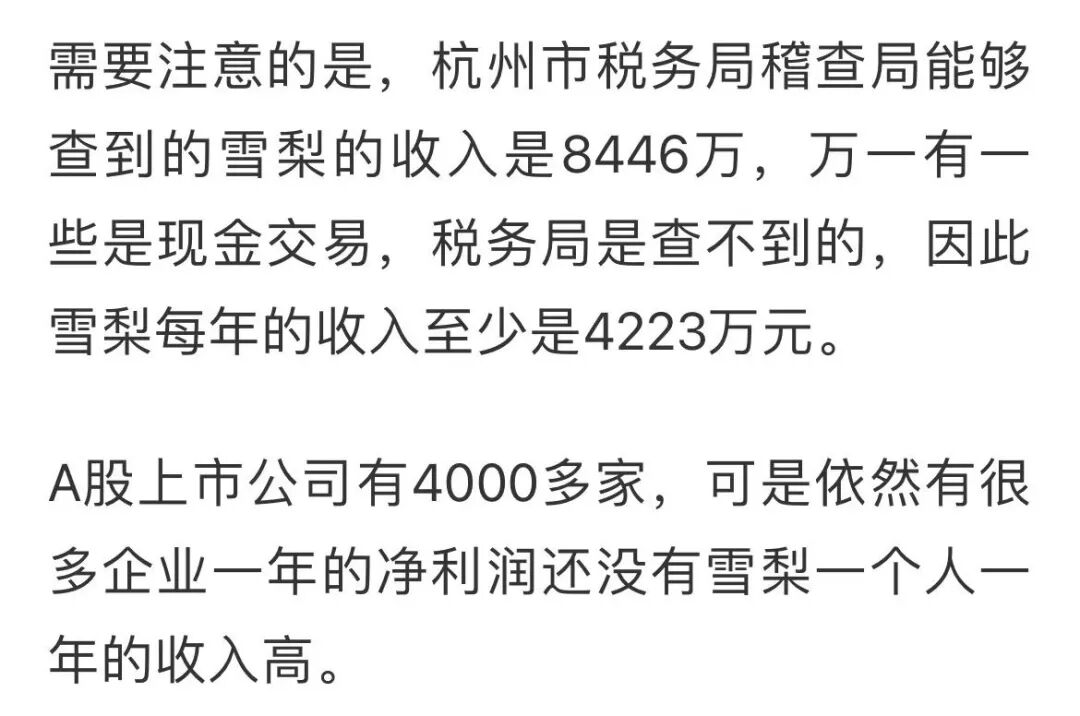 不仅如此,据相关网友透露,雪梨的年收入更是高达8000多万元。