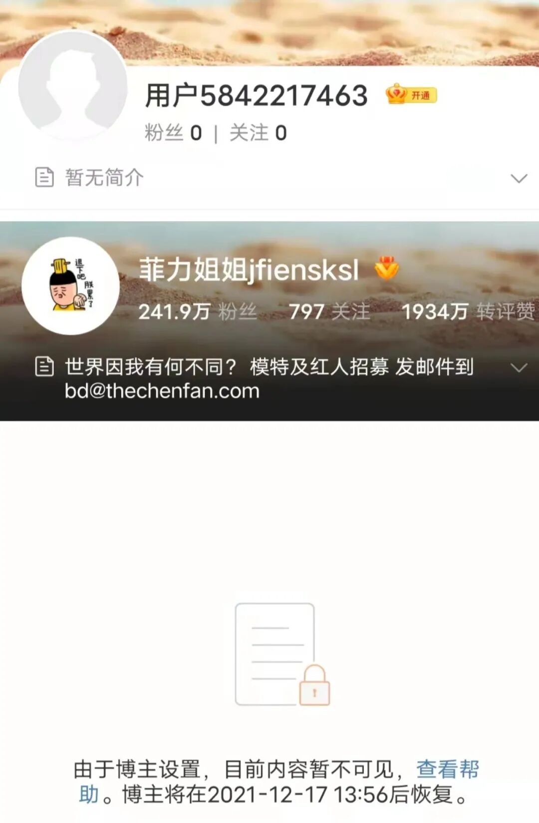 目前,雪梨和林珊珊二人的微博大号都已经被封。雪梨的私人微博小号“非力姐姐jfiensksl”也遭到了封禁处罚。