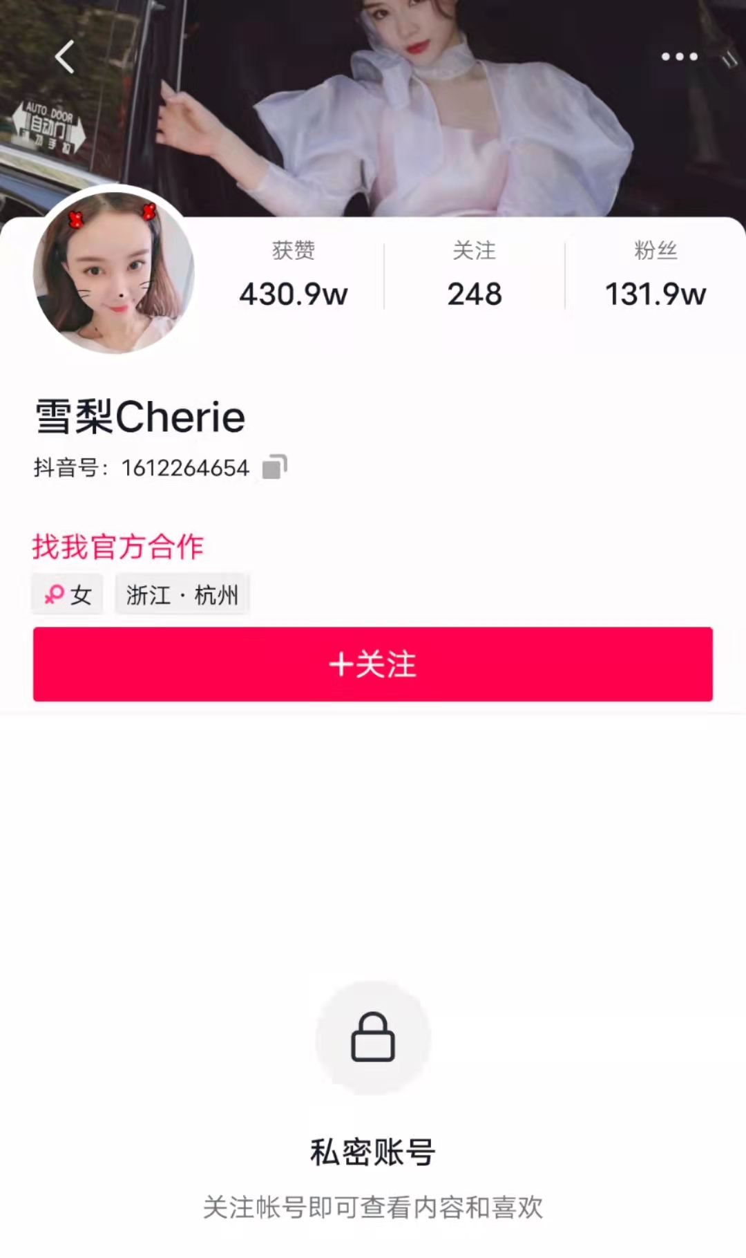 本处于私密状态的雪梨抖音账号,今天也已经无法搜索到。