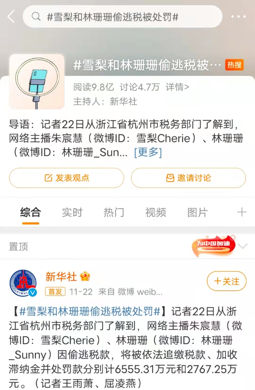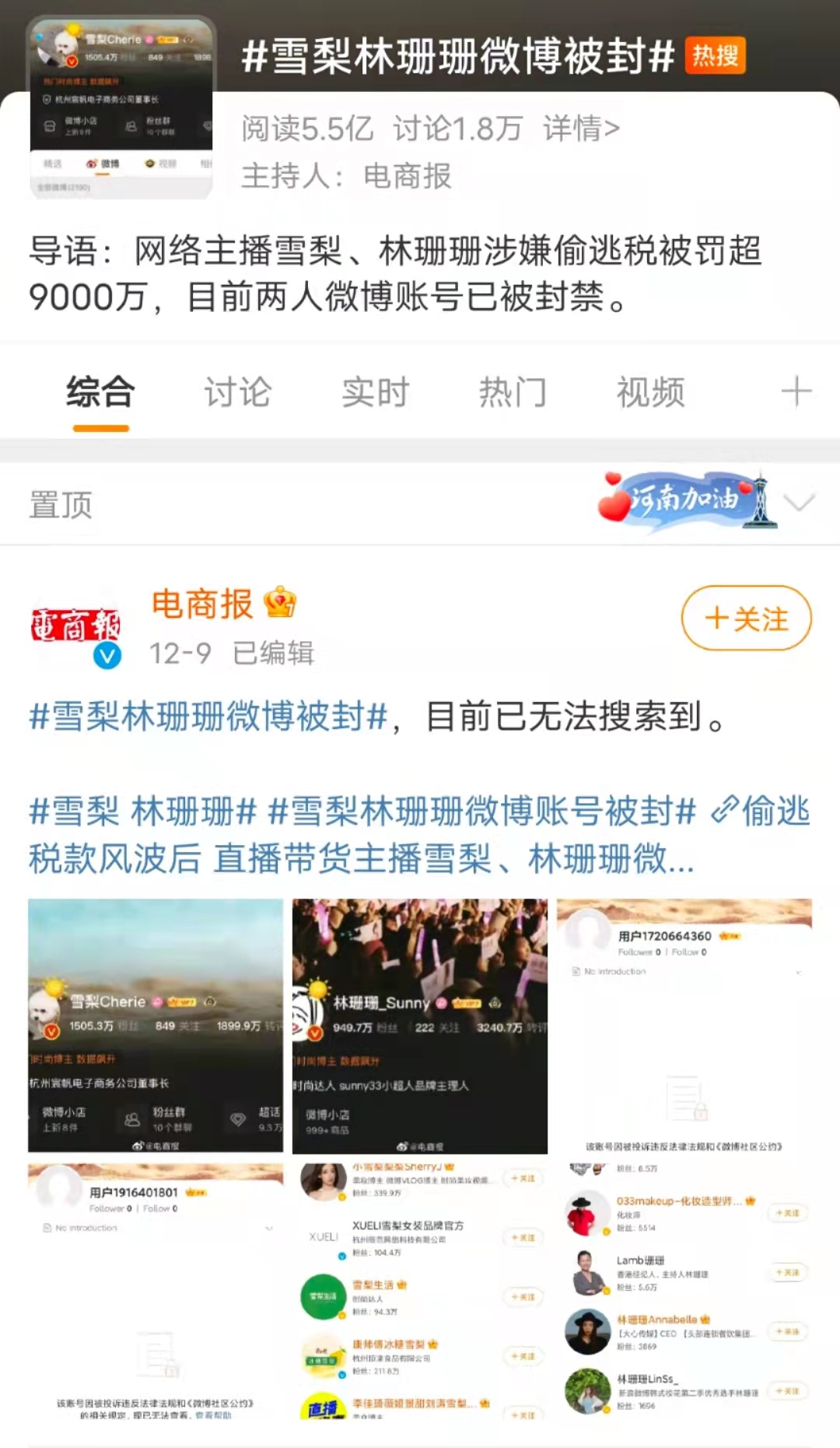 噢,上一次出圈是因为“雪梨、林珊珊偷逃税被处罚”。emmm……好像都不是啥正面消息……