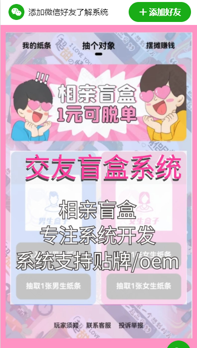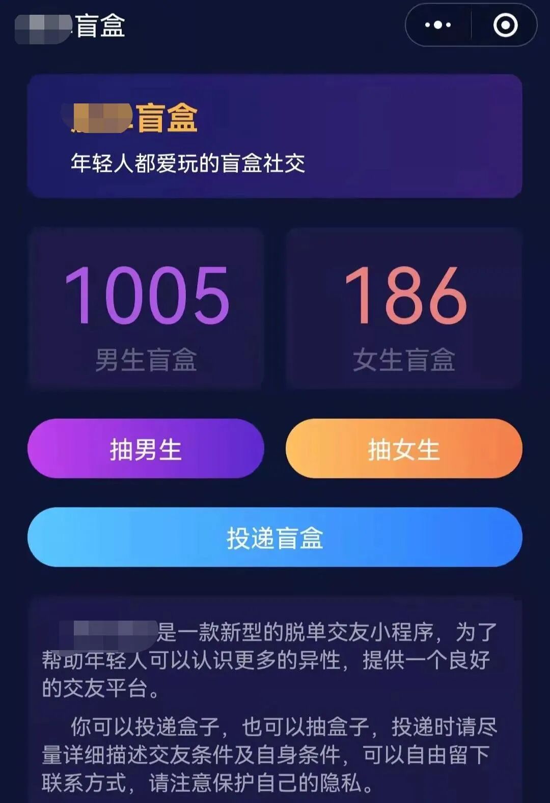 最近就有害怕过年被亲戚催婚,想快速脱单的朋友,跟我爆料了一种名为脱单盲盒的小程序,说是玩了就可以脱单。