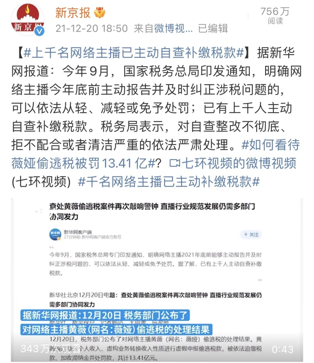 薇娅因偷漏税被罚款,网友也将目光转向了业内其它头部主播:他们也存在税务问题吗?
