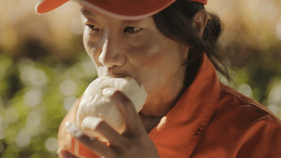 而在视频里跑步上班的同时,马路上的清洁工阿姨吃几口馒头草草应付自己的早餐,也开始了一天的工作。