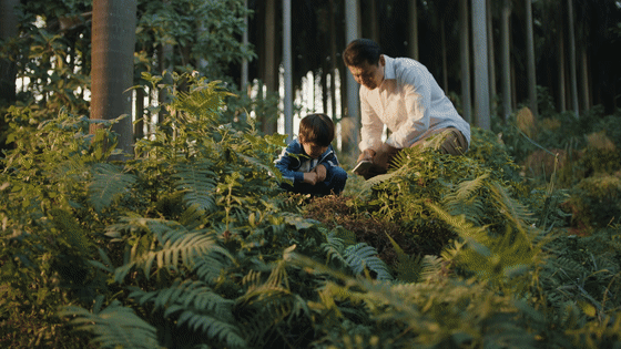 在片头里出现过一次的小男孩,这回坐到了爸爸的自行车后座上。他问道:含羞草真的会害羞吗?