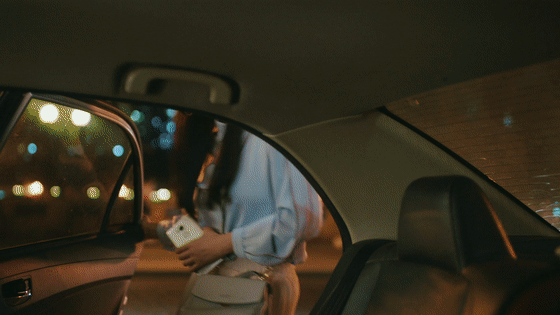 咱再瞅瞅这女白领,已经顺利用手机约到了车,上车时还和司机的女儿在车里来了个互动。