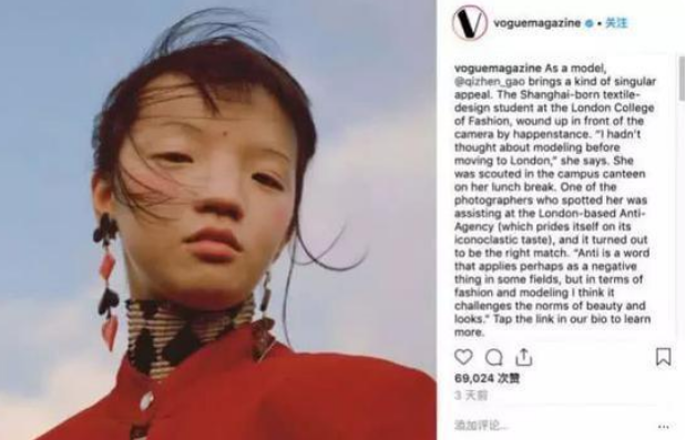 全球著名时尚杂志《Vogue》美国版,曾经发布的一组名为“中国脸”的照片,选用了一名中国上海的女模特,以塌鼻子眯眯眼的造型出镜,甚至剃掉了大部分眉毛。