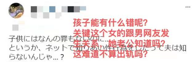 “孩子能有什么错呢?关键这个女的和男网友发生关系,她老公知道吗?这不算出轨吗?”