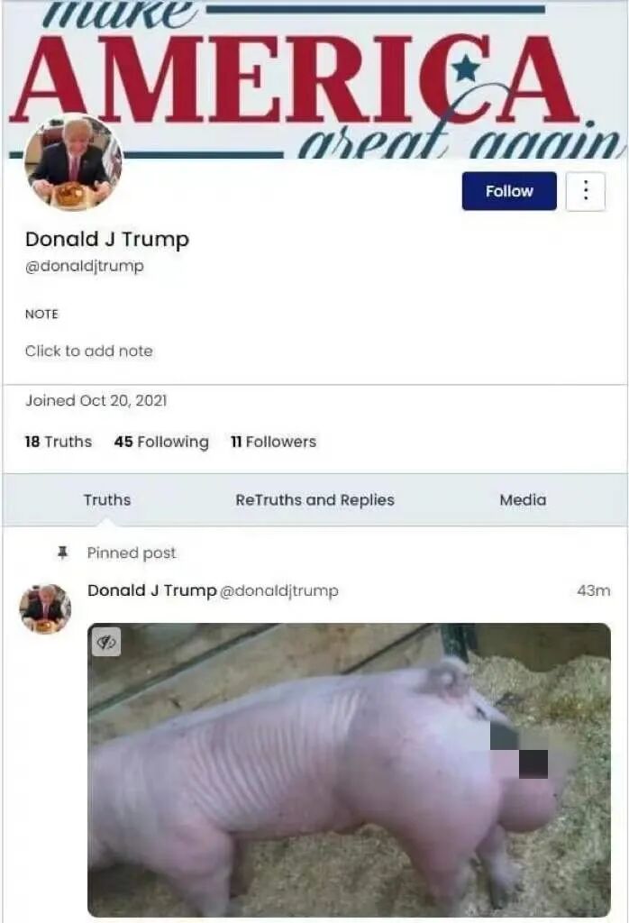 该网站刚宣布上线测试2小时内就被黑,贴上了“不雅猪照”,随后,Truth Socical匆匆下线。