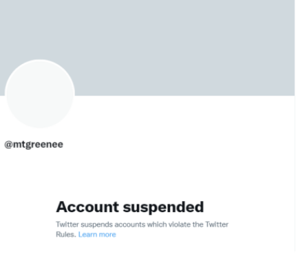 1月3号美国共和党籍众议员玛乔丽·泰勒·格林因为涉嫌传播有关新冠肺炎疫情的错误消息,个人Twitter账户被永久封号,Facebook账号也被临时封禁24小时。