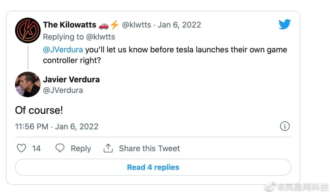 凤凰网科技:特斯拉拟推出车用游戏手柄