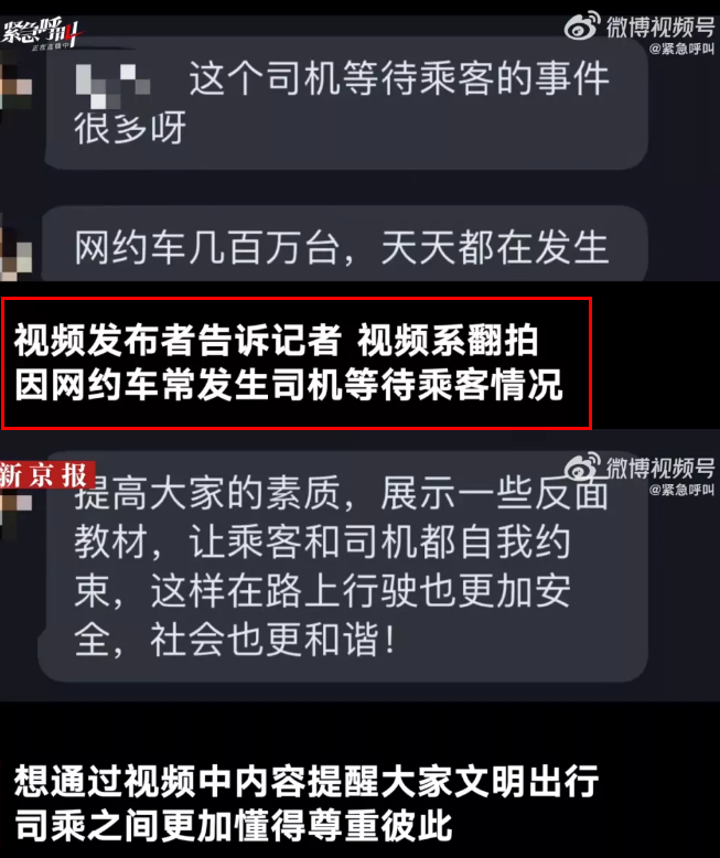 他表示:因为现实生活中经常发生,网约车司机等待乘客的情况,他想通过视频中内容,提醒大家文明出行,司乘之间更加懂得尊重彼此。
