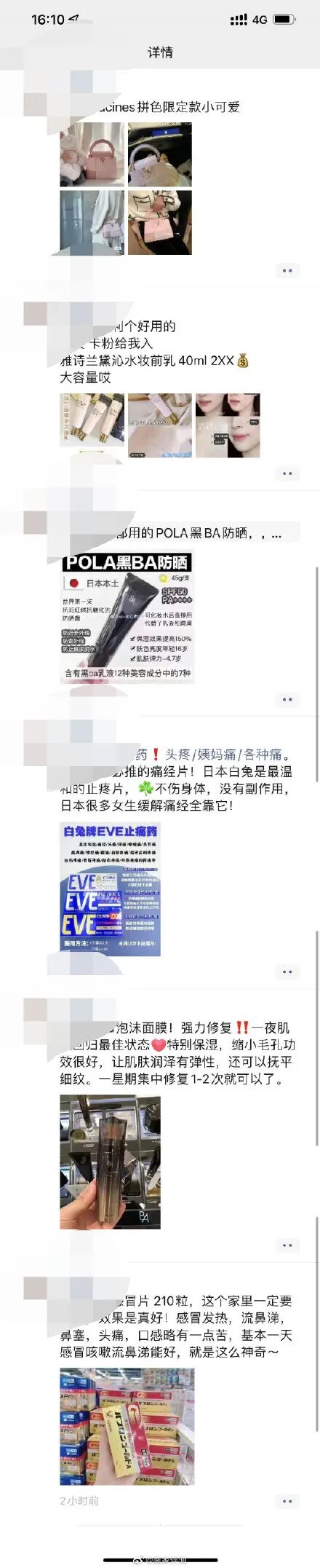 根据我“潜伏”在微博上的观察,目前为止大部分“中招”的,基本上还都是微商相关从业人员。被折叠的朋友圈内容,也都是千篇一律的产品信息……