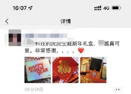 比如某家媒体的其中一位老师,收到某厂商送的新年礼盒,发个朋友圈感谢一下;
