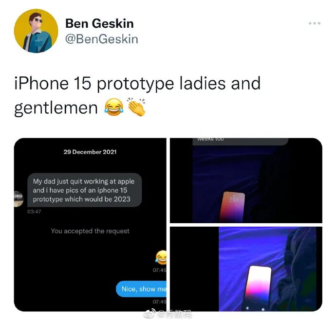 同样是在昨天,外网又传出了几张所谓“iPhone 15”的照片。