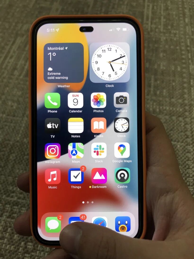 根据这张照片显示,iPhone 14将直接弃用刘海,采用“药丸屏”设计,占据屏幕空间更小,屏占比更高。