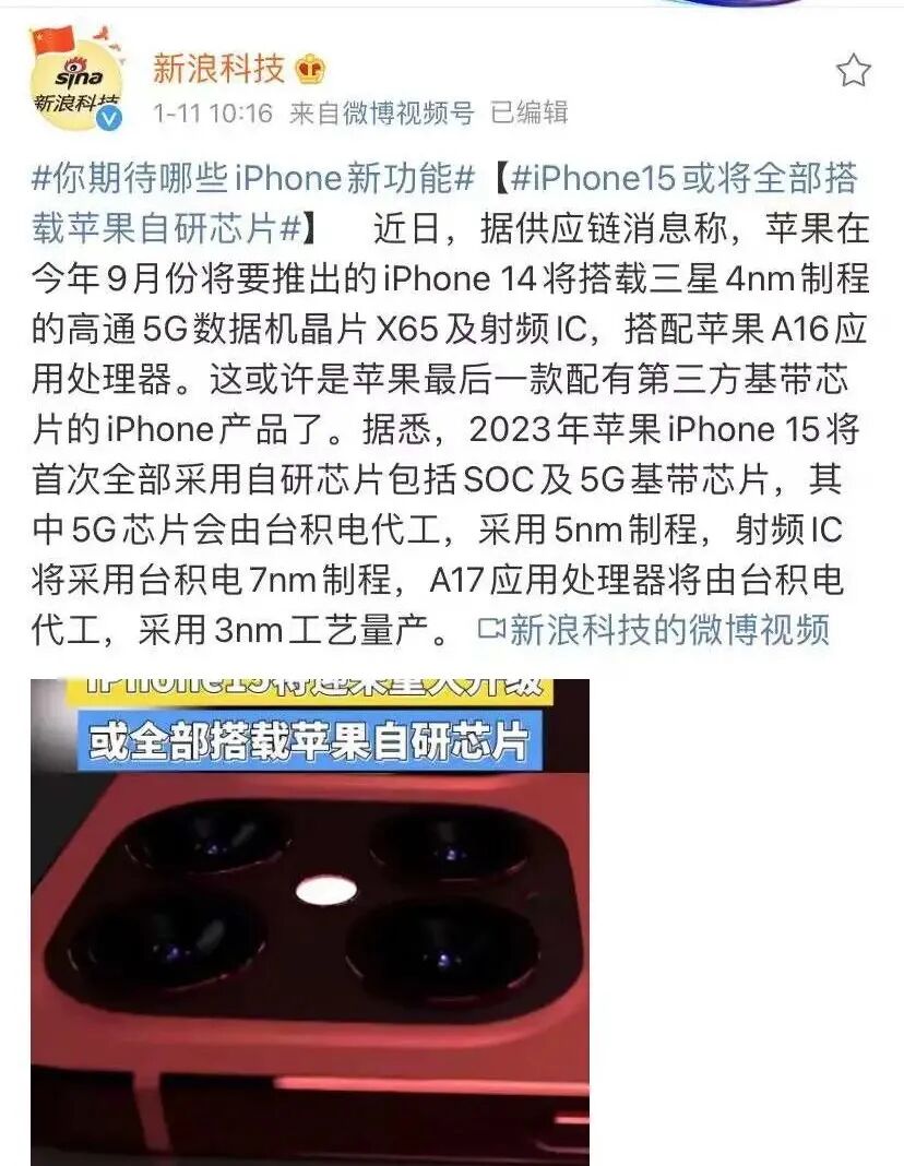 苹果将在iPhone 15上首次实现Soc、射频IC、5G基带等芯片领域的全自研。简而言之,就是整体的芯片性能和适配性,都可能会因此再上一个档次。