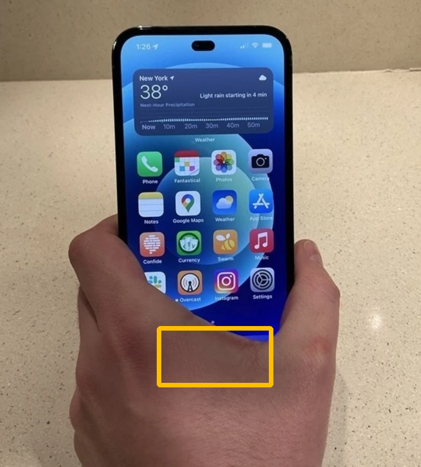 仔细看图片其实就可以发现,Jeff Grossman用自己的手,挡住了iPhone的刘海。