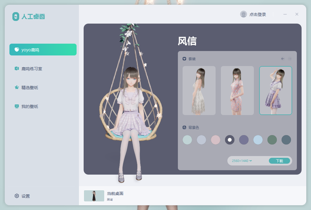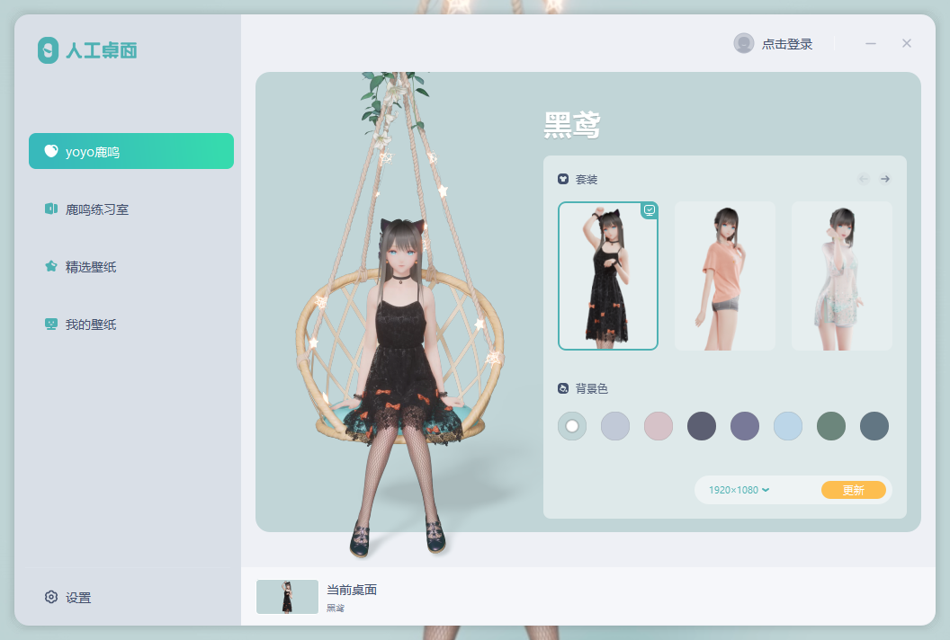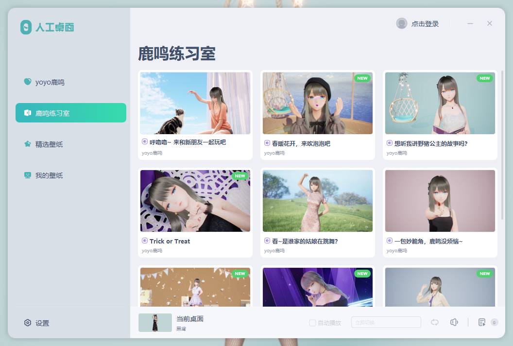 最具特色的地方在于,你还可以让她在你的桌面为你跳舞,在设置中选择“鹿鸣练习室”就可以挑选你喜欢的舞蹈。