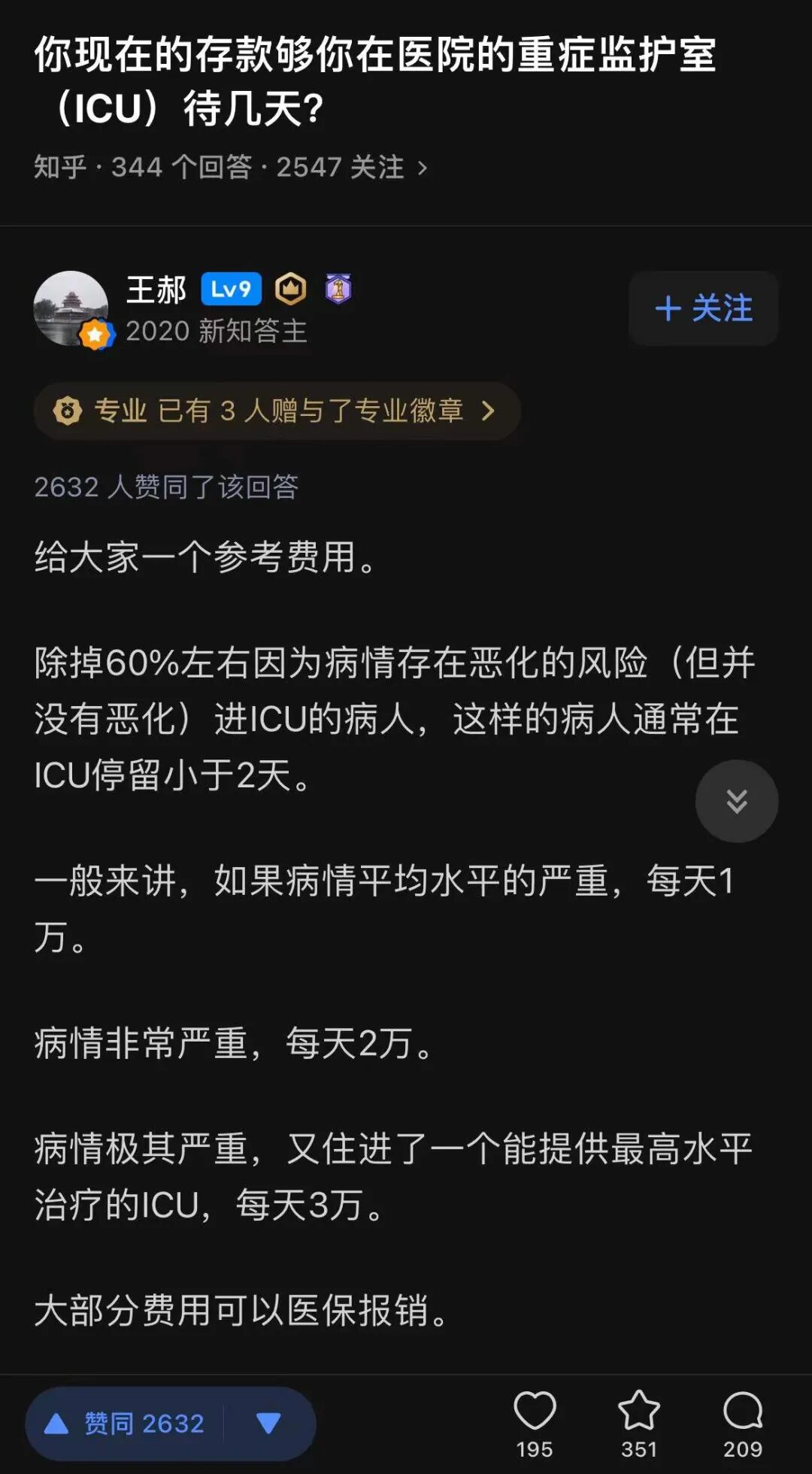 知乎上曾经有一个热门话题“你现在的存款够你在医院的重症监护室(ICU)待几天?”