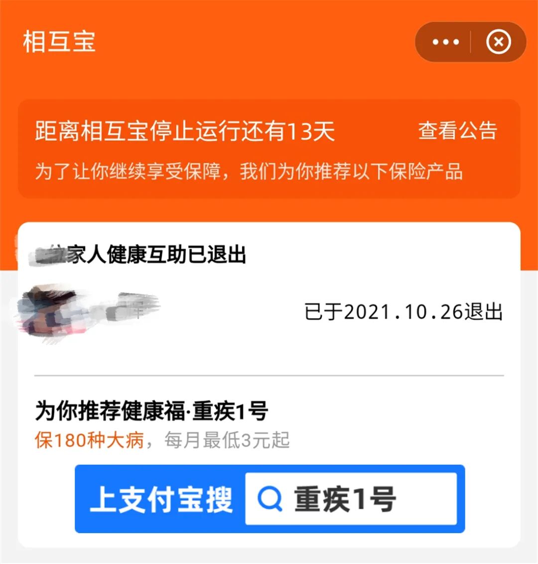 按照官方的公告,相互宝将于13天之后,也就是本月28日正式停止运营。