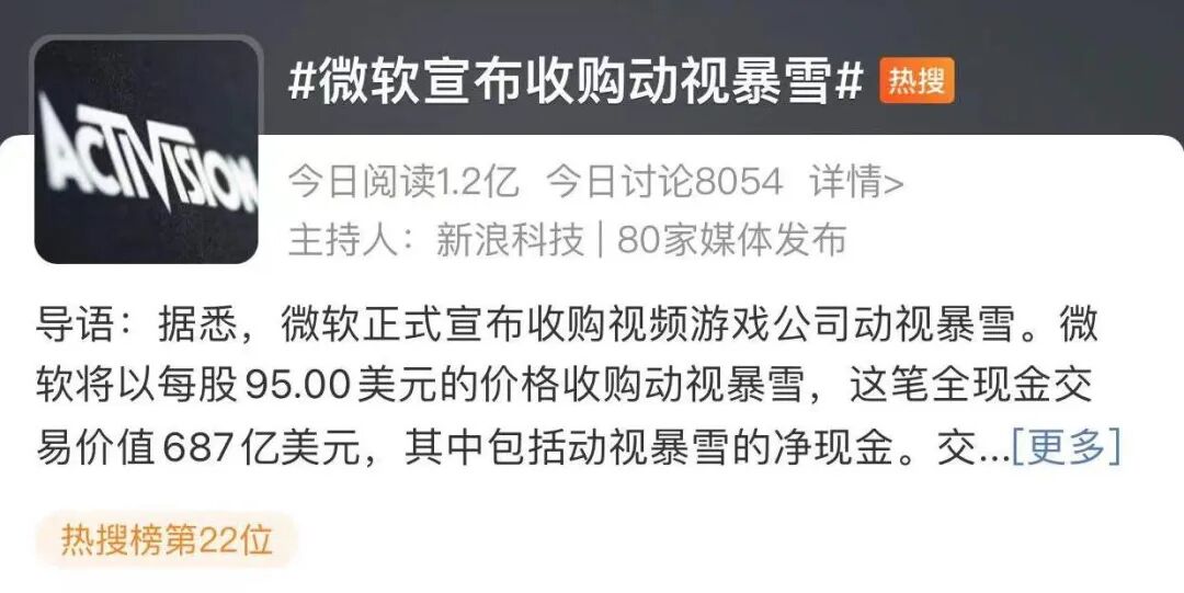昨天游戏圈大地震,互联网巨头微软发表官方声明称,将以每股95美元的价格收购游戏巨头动视暴雪,交易价值达到687亿美元。
