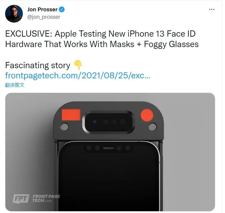 根据海外知名数码博主 @Jon Prosser的爆料,苹果目前正在加紧测试新的 Face ID 硬件。全新的Face ID,支持用户在戴口罩或眼镜起雾时也能及时解锁iPhone。