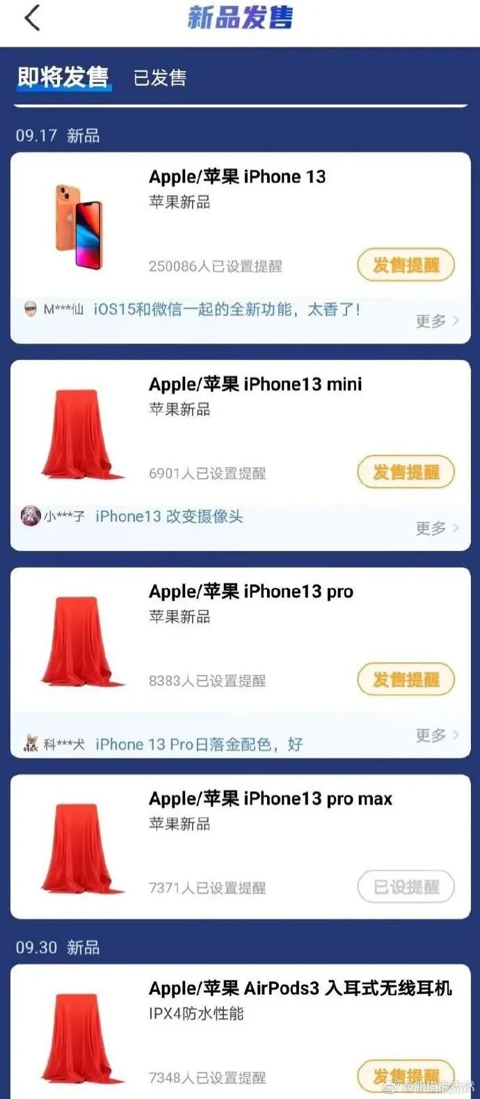 根据博主 @熊猫很秃然的爆料,某电商平台甚至已经上架了iPhone 13系列的预热海报。