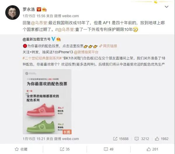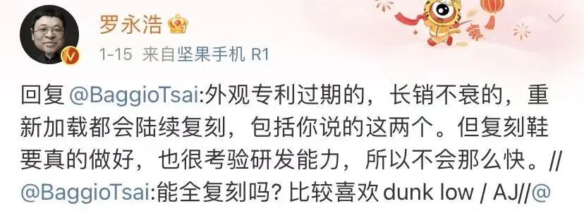 快科技:罗永浩带货Nike“复刻”鞋引争议!本人强调:原版外观专利早已过期