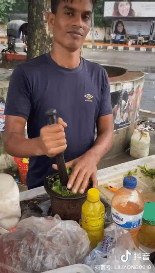 当然了,在刘庸的视频里,除了“干净又卫生”的街头小吃,还有友善开朗的年轻商贩。