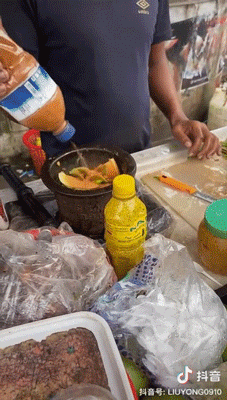 最离谱的是印度的水果沙拉,撒点调料,来点咸菜,再来一勺不知道是盐还是糖的东西,再来点香菜,然后放在一起捣捣捣。