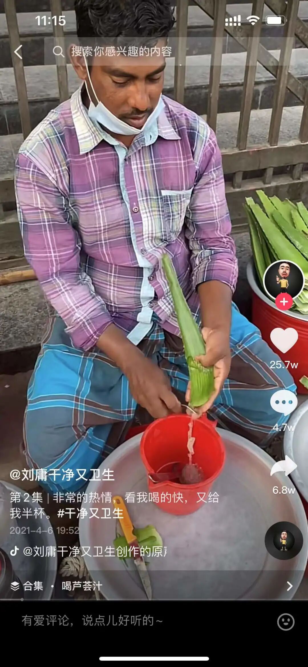 其中,刘庸的“卧底”条件最为艰辛,他的视频大部分都是在印度街头,尝试当地看上去并不怎么卫生的小吃摊,标志性的话术是“干净又卫生”。