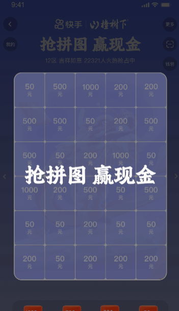 “抢拼图 赢现金”的玩法则是选定一个金额的拼图,通过做各种任务增加拼图抢占进度,首个进度达到100%的用户就能获得该拼图所对应的现金红包,