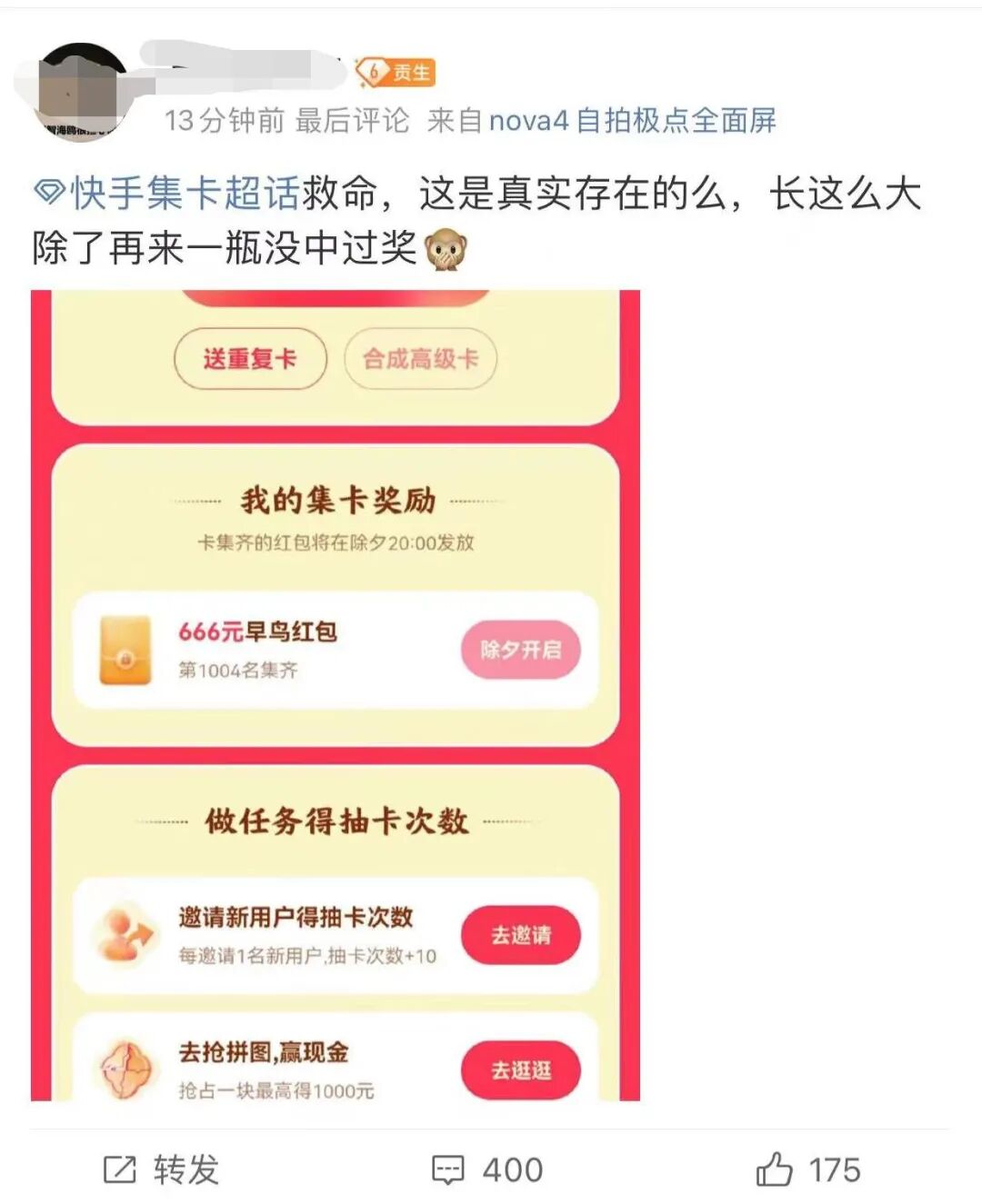 集卡这一快手经典新春项目也毫无悬念的再次回归。