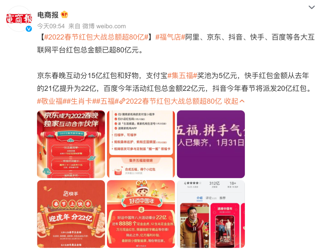 但话说回来,靠换金钱豹头像暴富,还不如玩大厂春节活动实在一些,毕竟今年的大厂春节红包总额可是超过了80亿!
