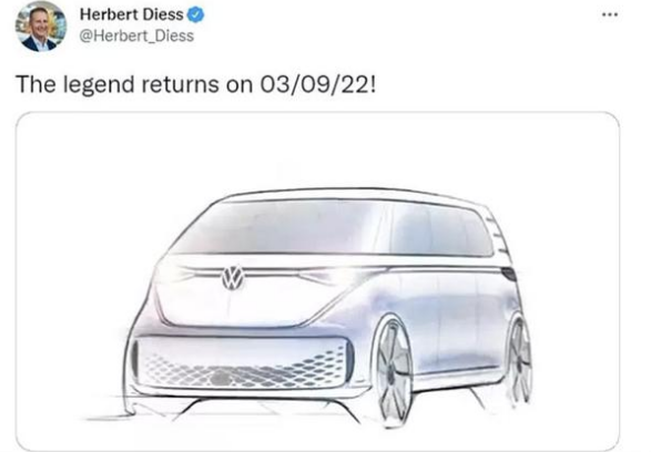 而最近先是大众汽车首席执行官CEO赫伯特·迪斯,在推特上发表了:“传奇将于2022年3月9日回归”,另外还配了一张新车设计草图。