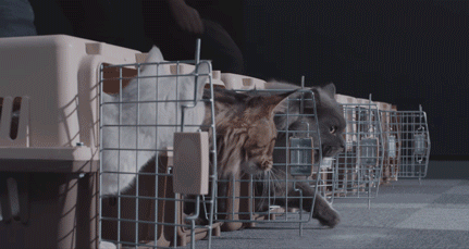 所以在拜年视频里,出现了各种戴上以往在人身上才会出现的动捕工具,用猫咪来进行动作捕捉的技术。
