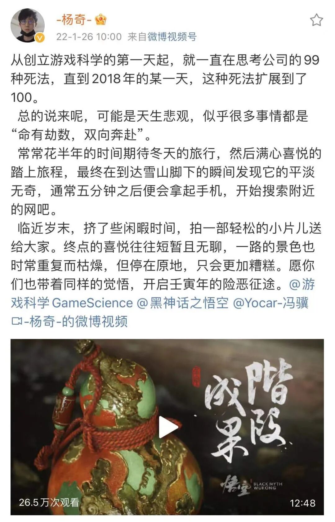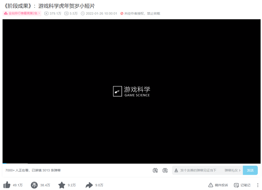 就在昨天早间,他们发布了2022年首支12分48秒宣传视频:“《阶段成果》:游戏科学虎年贺岁小短片”。
