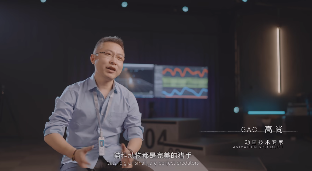 紧接着一位名叫高尚,标签是动画专家的人出现,阐述了过去一段时间,《黑神话:悟空》主要在攻克的难题:花费大量时间精力,来进行四足动物捕捉技术的样本收集。