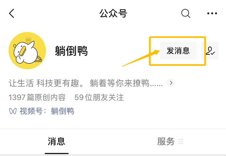 点击右上角“发消息”
