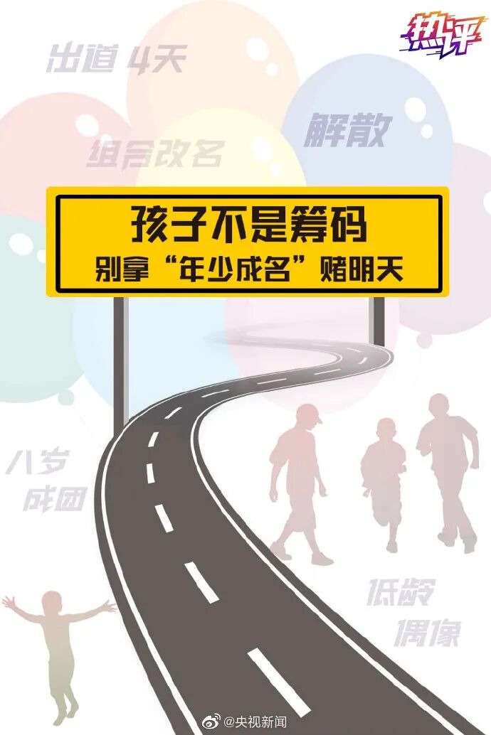 央视网发文表示:8岁出道大可不必。九年义务教育都没结束,就在资本运作下开始“营业”,不是妥妥的“童工”么。