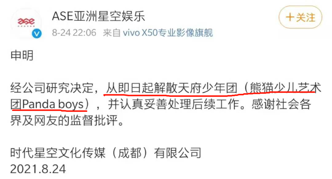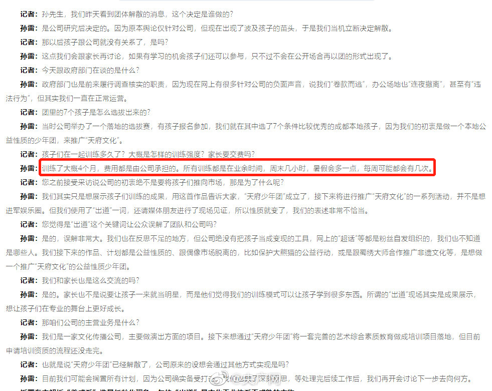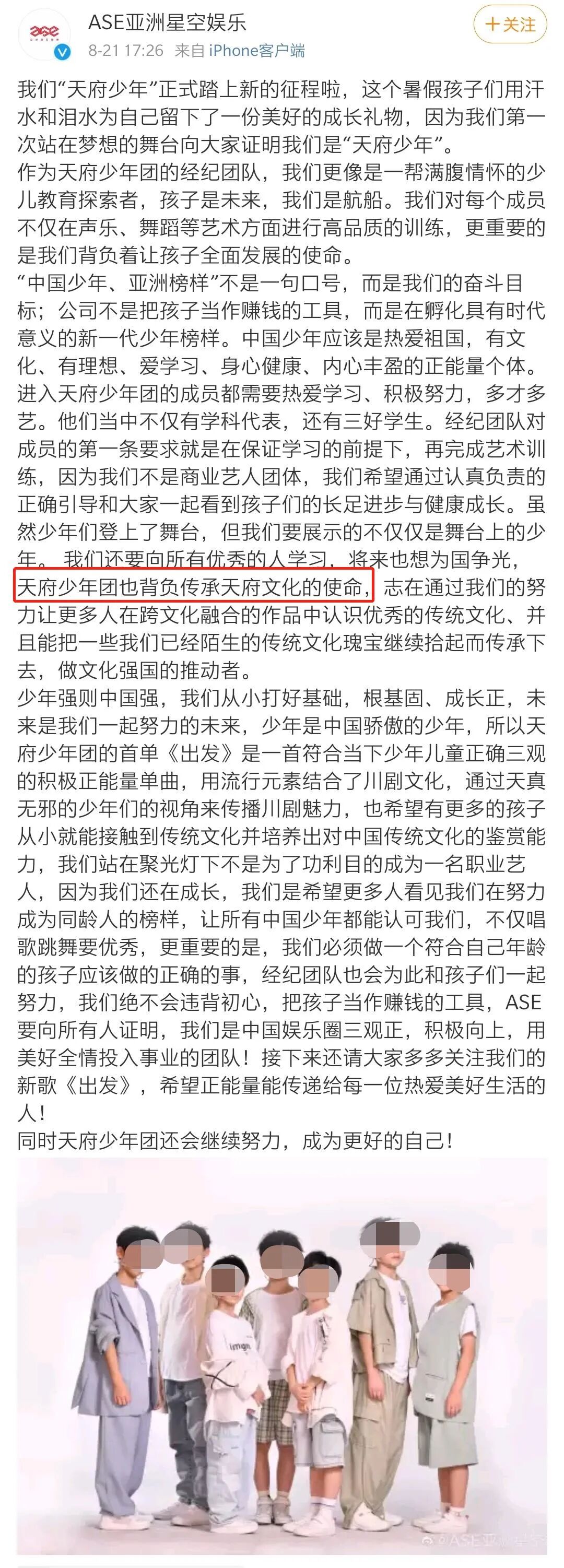 8月21日,“天府少年团”所属公司回应质疑,强调天府少年团背负传承天府文化的使命,公司不是把孩子当作赚钱的工具。
