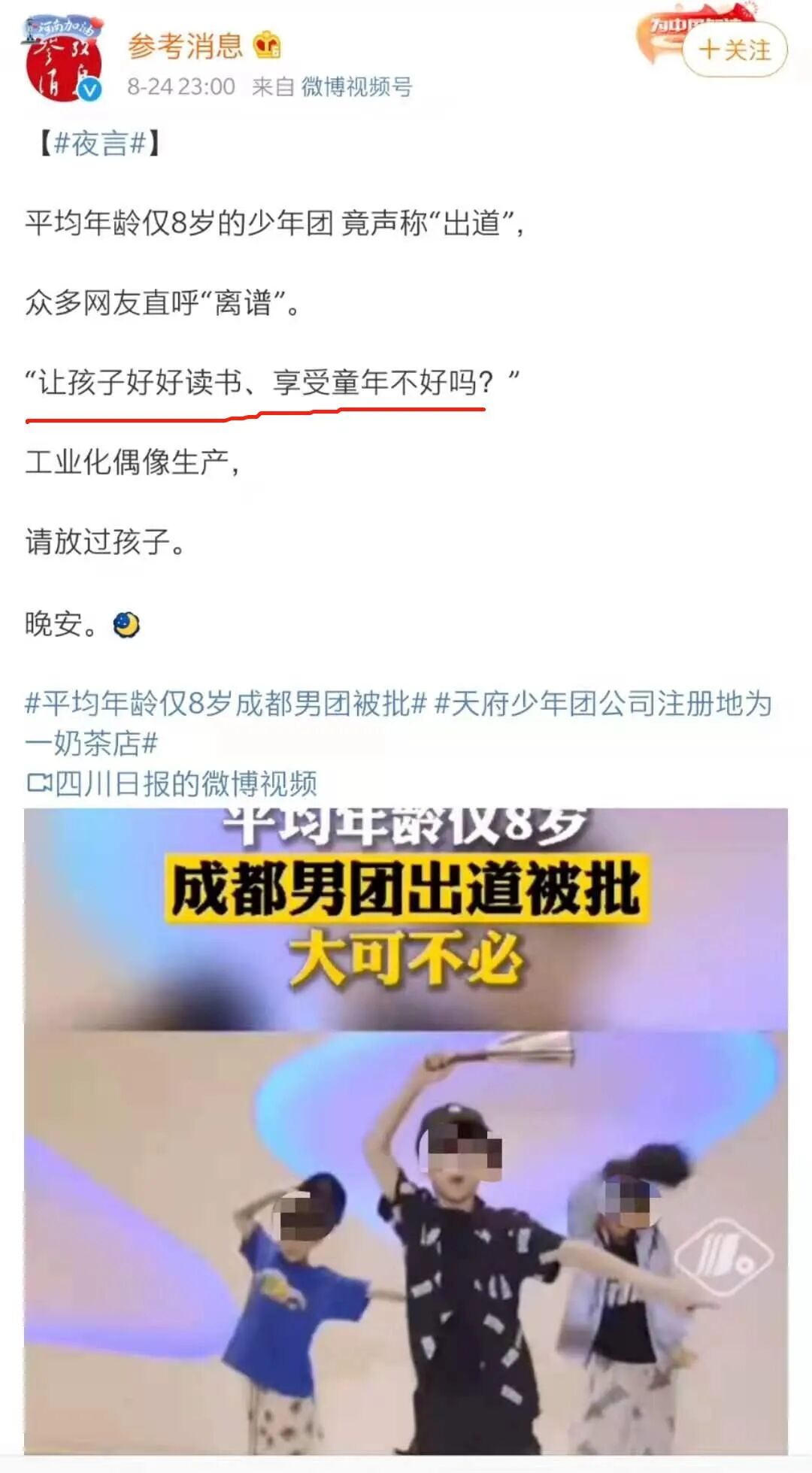 参考消息发表评论:“让孩子好好读书、享受童年不好吗?”工业化偶像生产,请放过孩子。