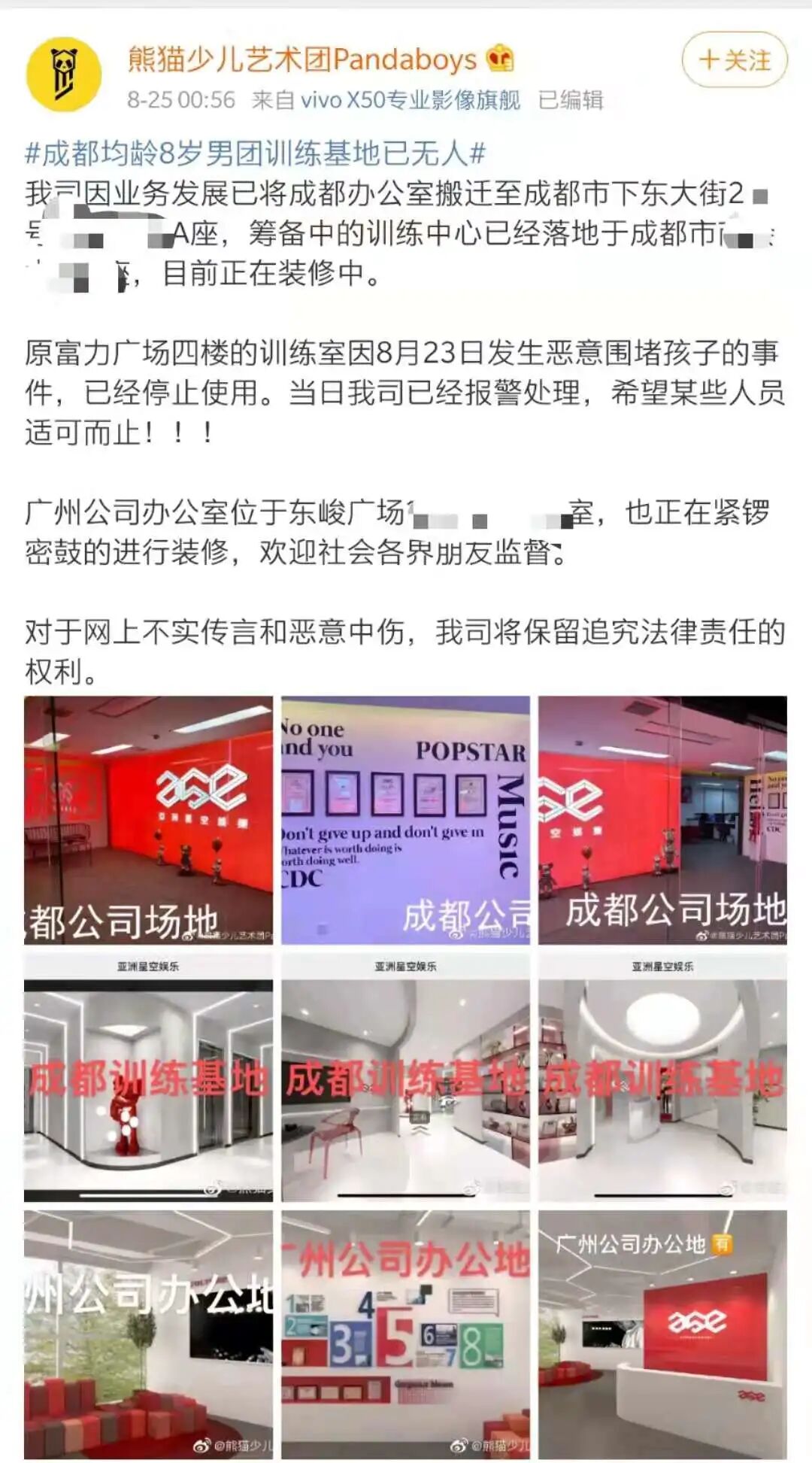 对于训练基地空无一人,其官方微博则表示已搬迁。另外,还透露原来的训练室发生了围堵孩子的事件。