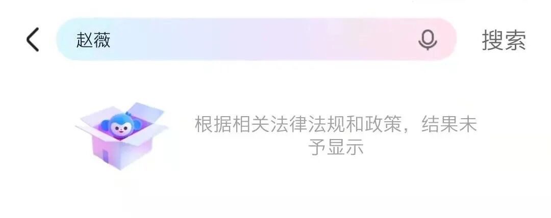 在相关视频平台搜索“赵薇”,提示“根据相关法律法规和政策,结果未予显示”。