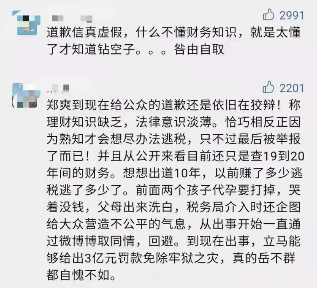 不过对于郑爽的这封道歉信,很多网友不买账,什么“财务知识缺乏、法律意识淡薄”,恰恰是因为太懂了才知道钻空子。