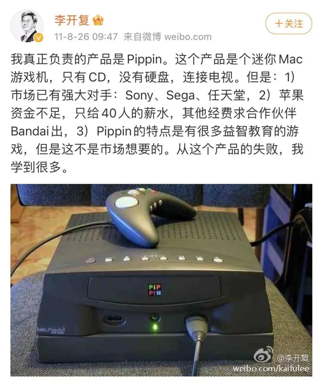后来,仅在日本市场面世2年的苹果Pippin游戏机,在售出4.2万台后悲惨退出历史舞台……