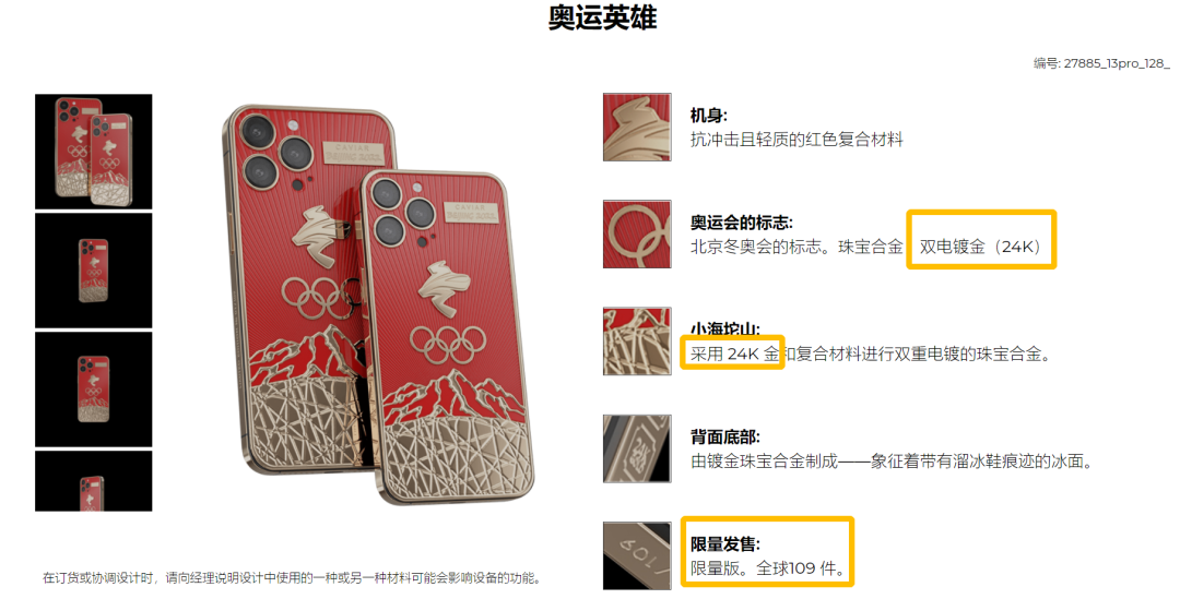 你们想啊,本身就是苹果最新的iPhone 13系列、又是百年一遇的北京冬奥主题、再加上纯纯的黄金加成,这样一款手机谁不想拥有?!