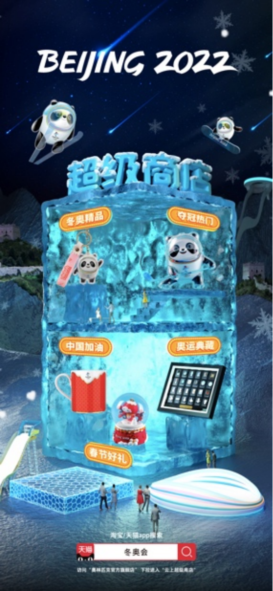 同时,在天猫上,北京冬奥组委也利用奥林匹克官方旗舰店打造了“云上超级商店”,支持定制冬奥特许商品。